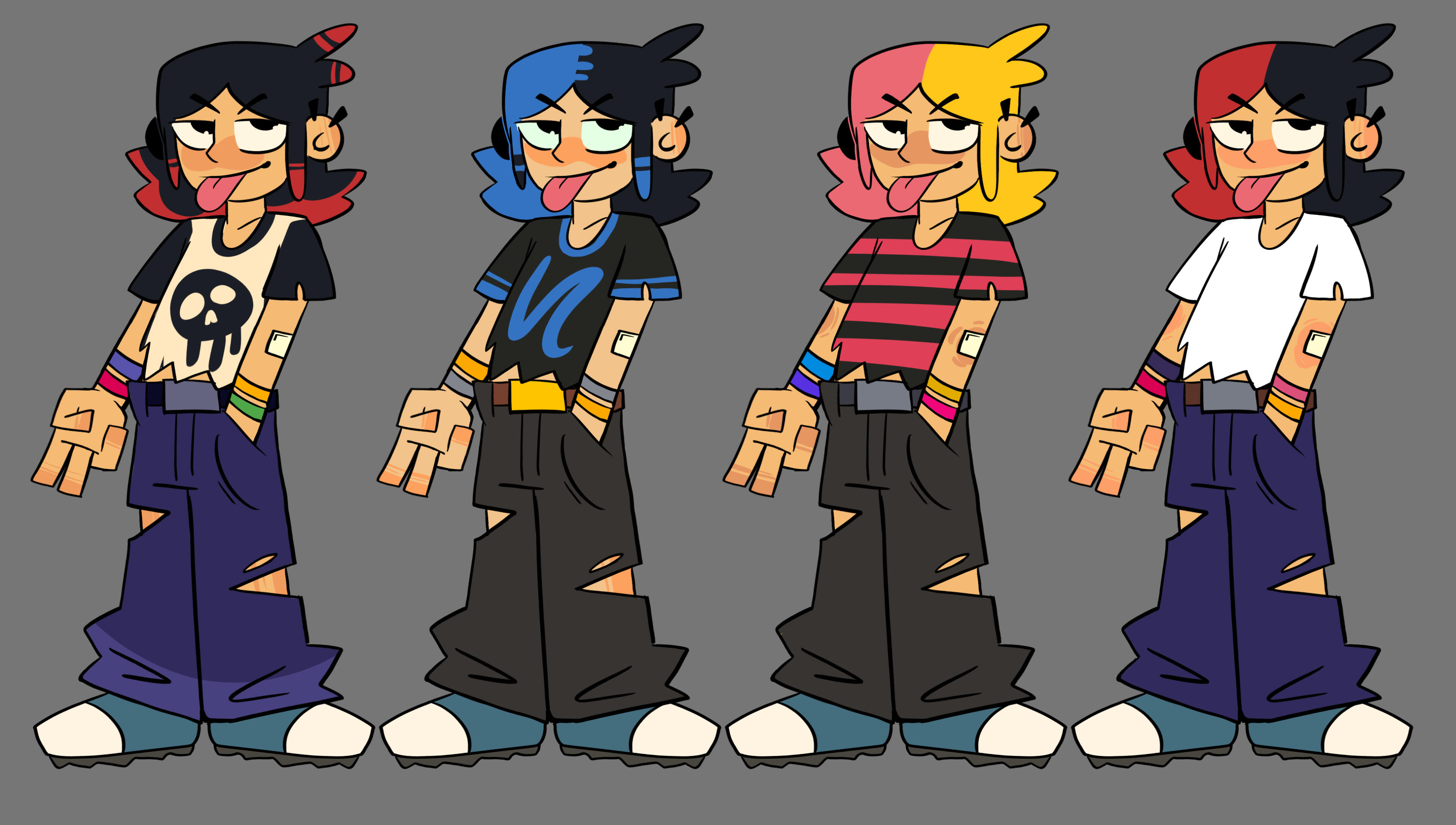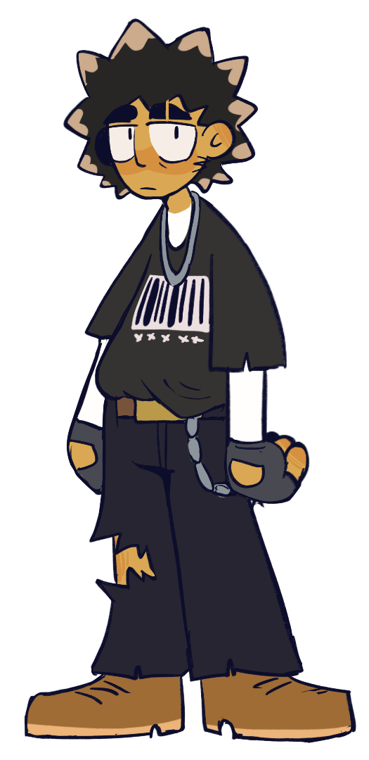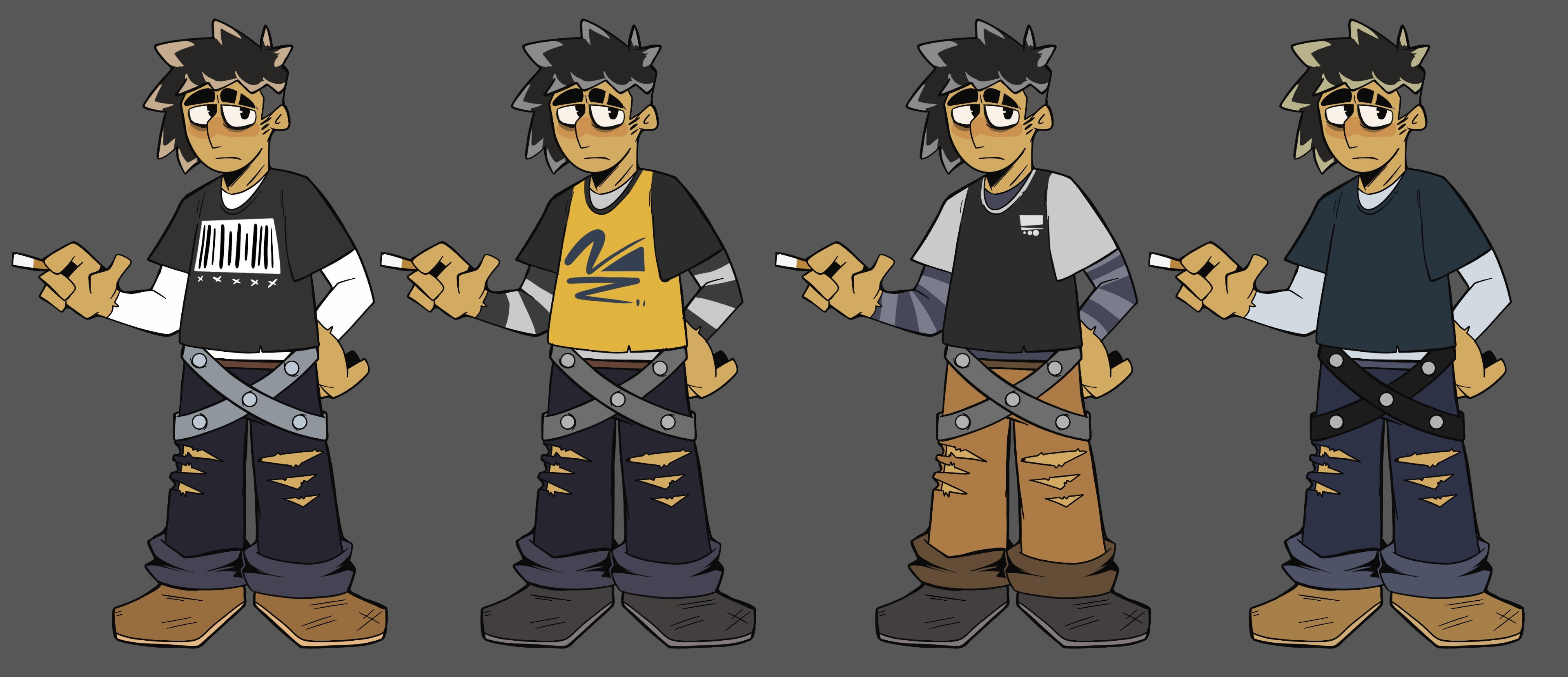Wyatt didn't have any screen time at all other than his hand holding the textbox in the first game, so he only had the color lineup and loose design for promotional material sake. We gave him frosted tips to resemble the tip of a cigarette considering he smokes (bad habit, he knows).