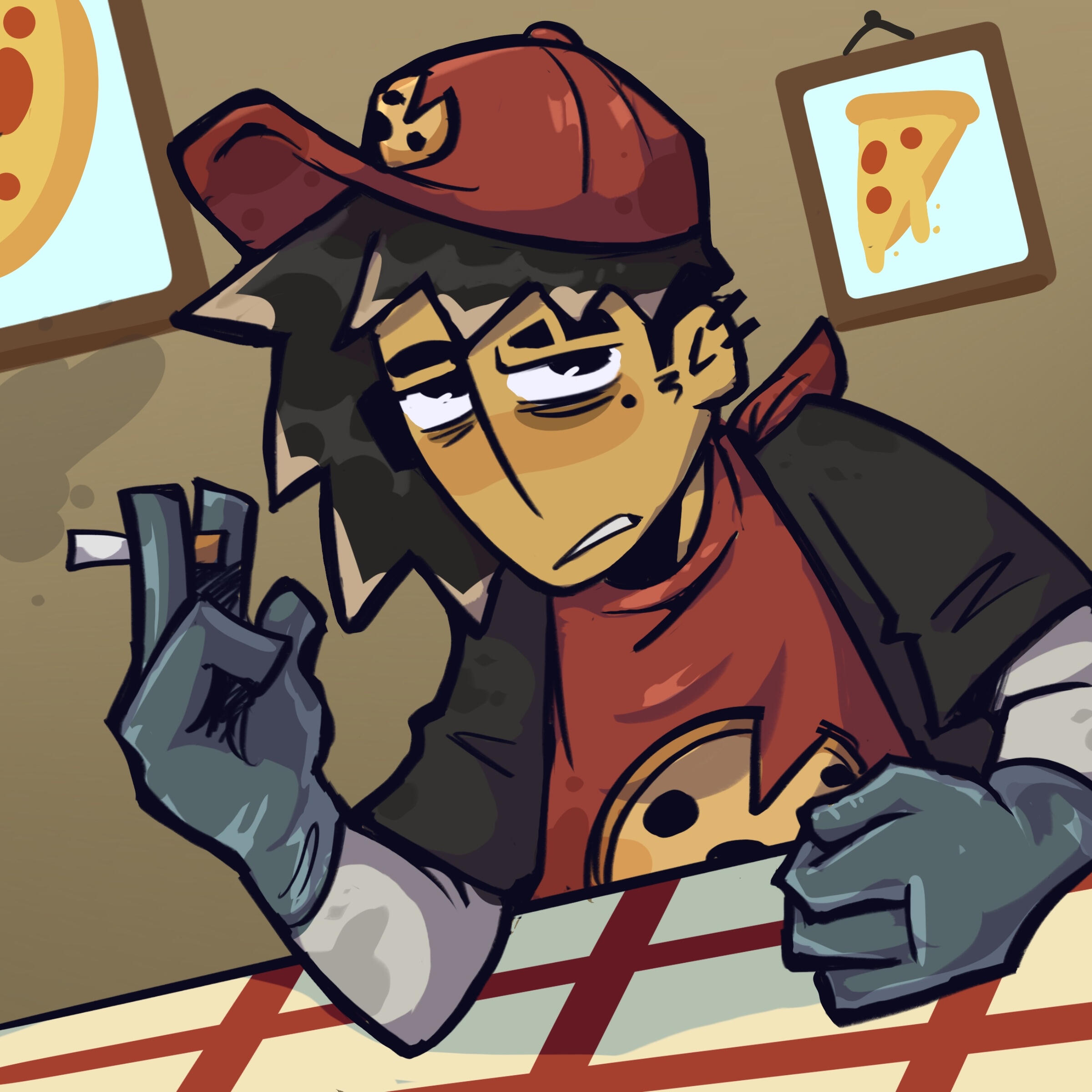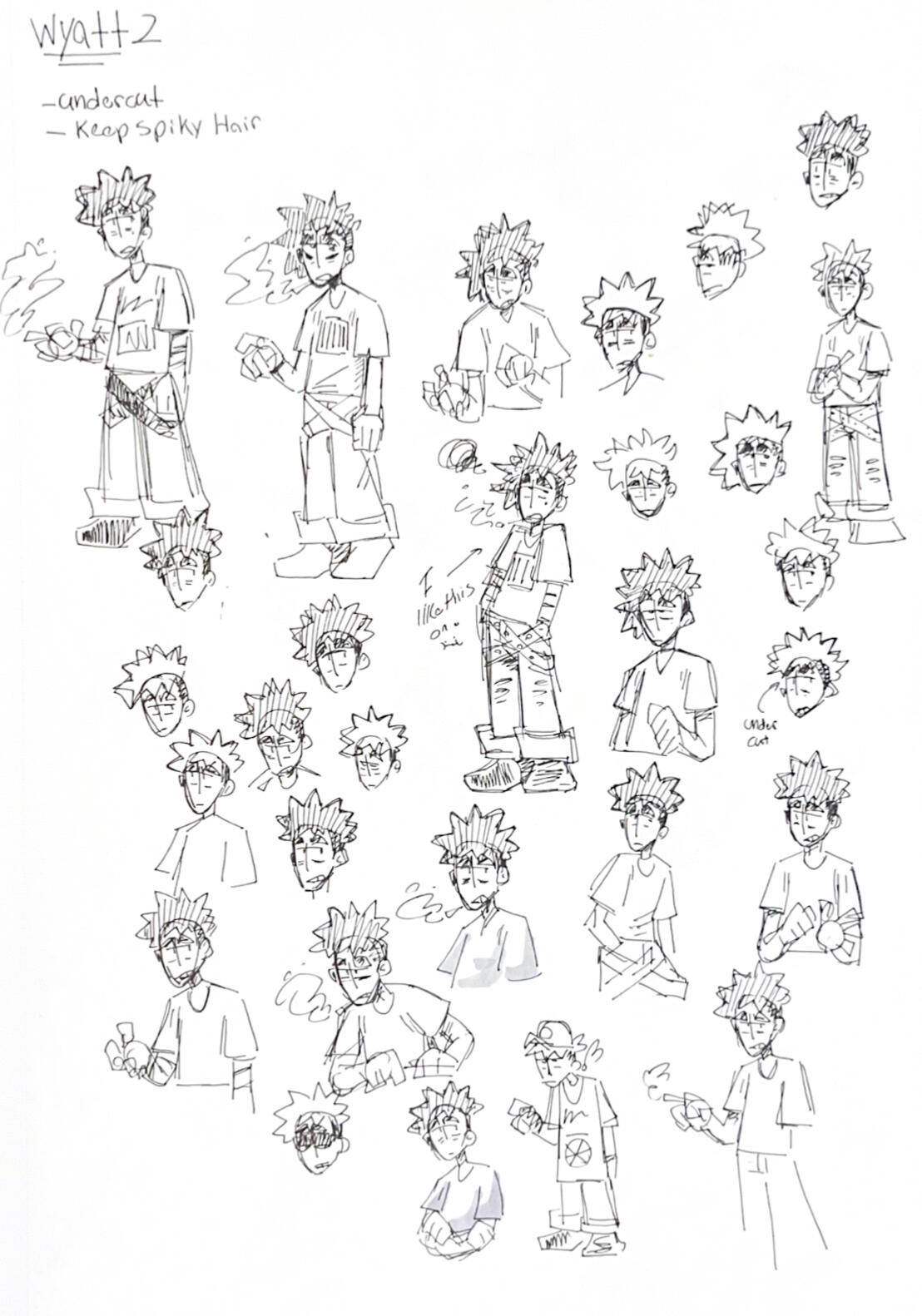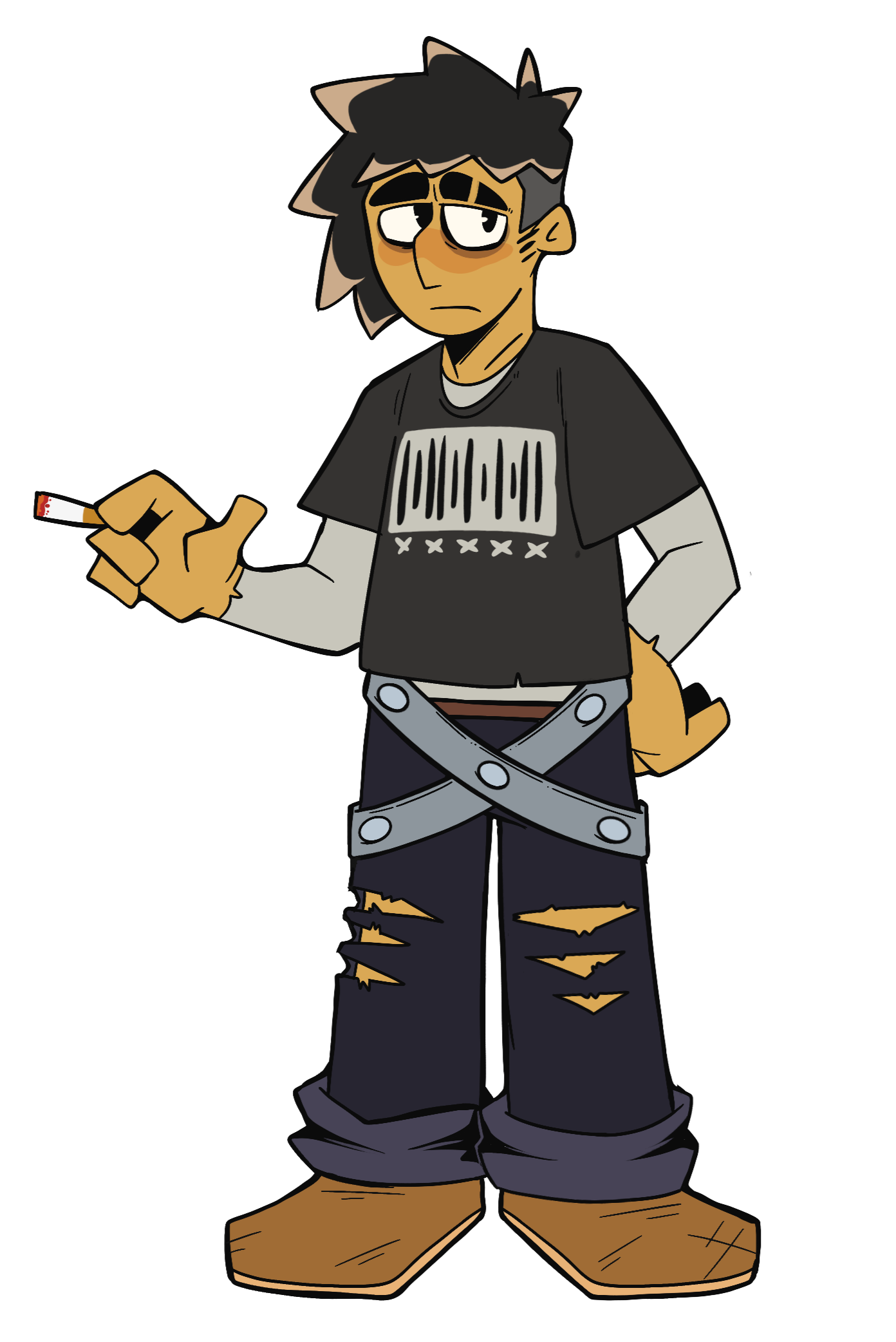 Wyatt didn't have any screen time at all other than his hand holding the textbox in the first game, so he only had the color lineup and loose design for promotional material sake. We gave him frosted tips to resemble the tip of a cigarette considering he smokes (bad habit, he knows).