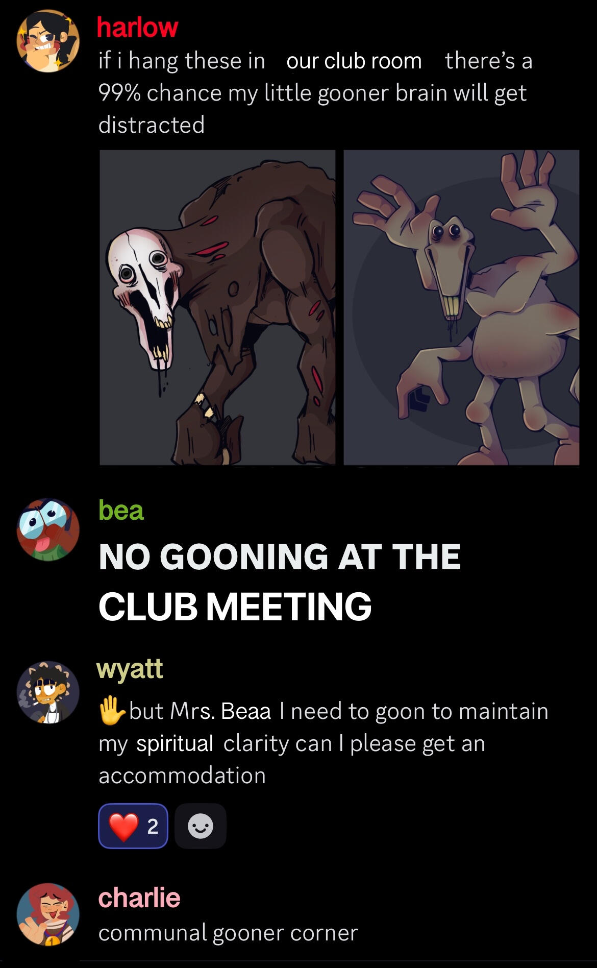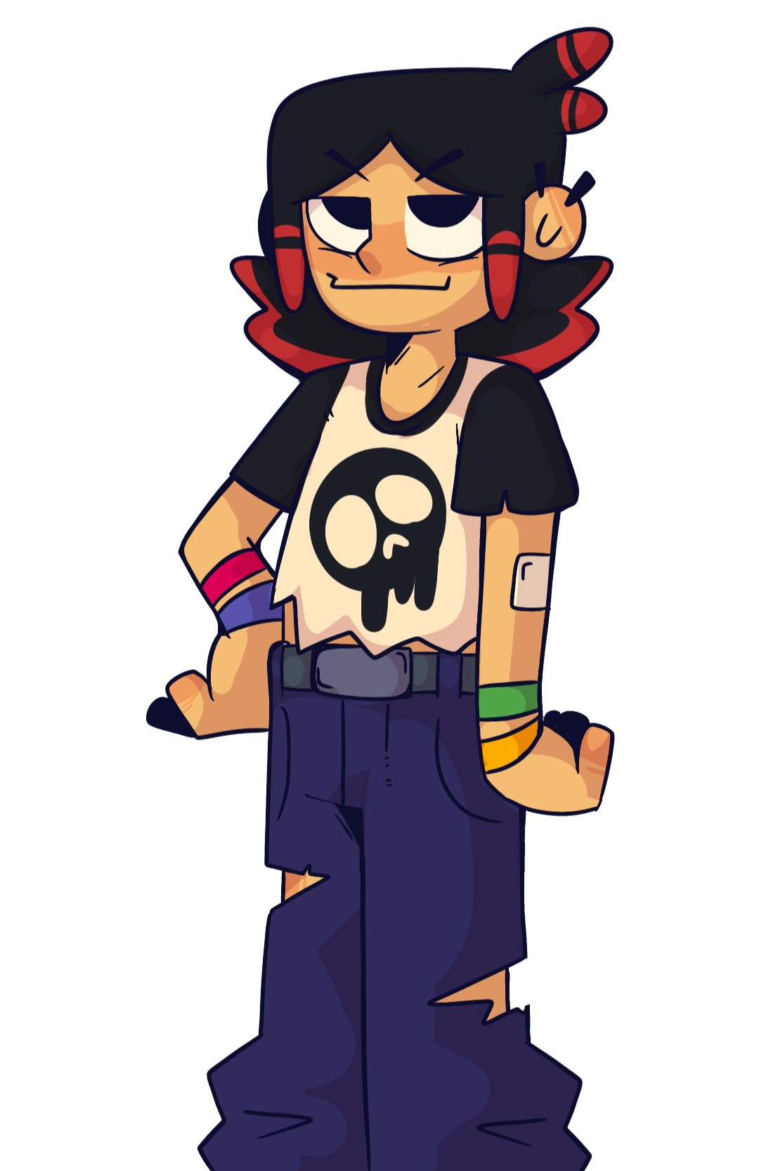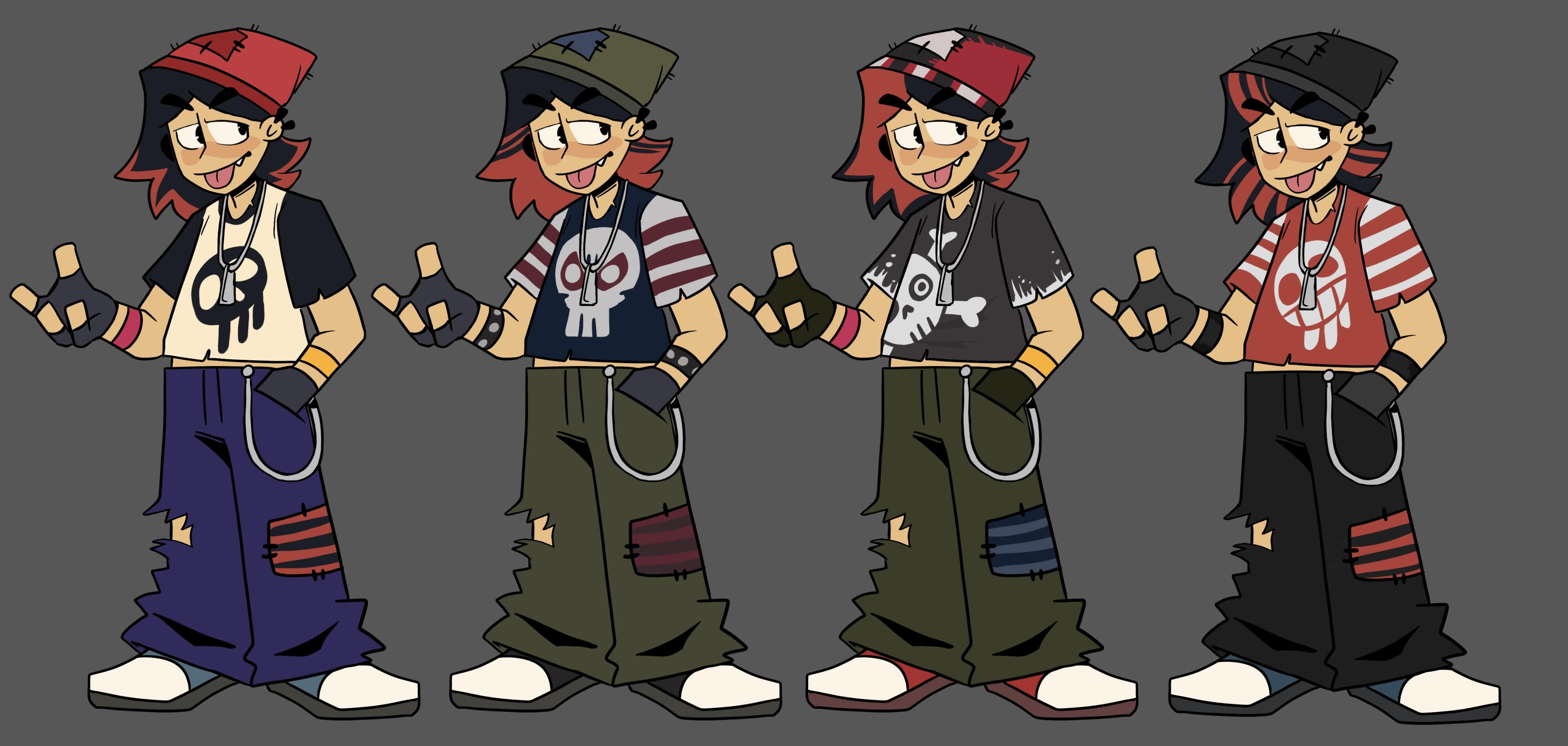Harlow was actually inspired by Dev Team Member Demiigod since she's an iconic, certified agent of chaos. That's the reason they had so much split hair dye in the beginning although we ended up going with the red highlights to cover it up (cat's out of the bag now...oops).