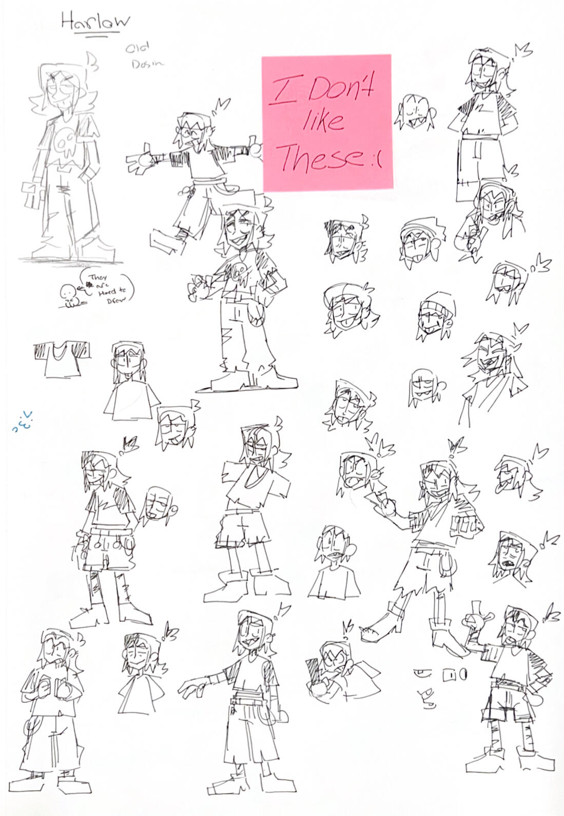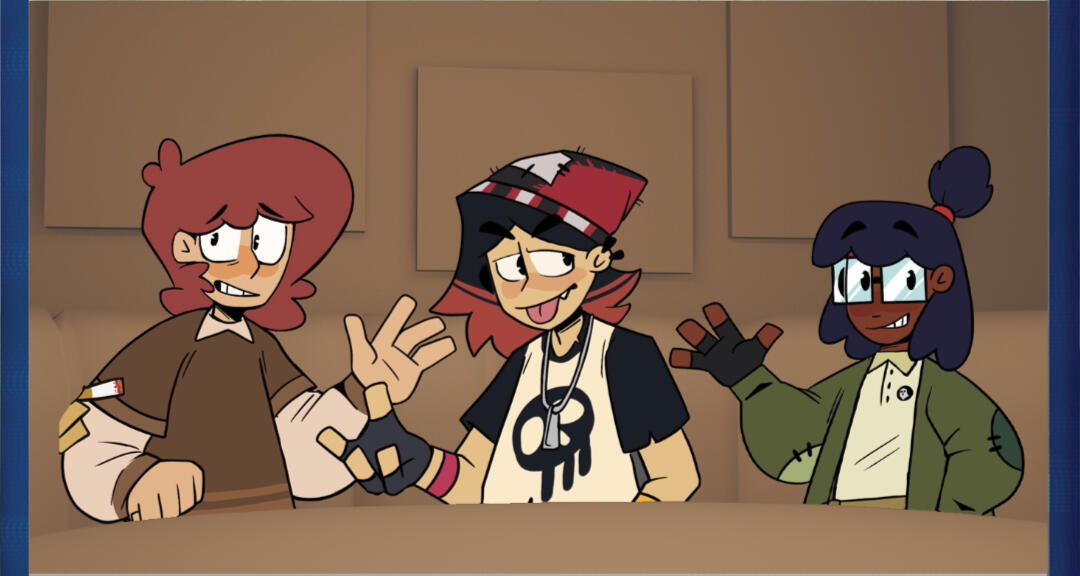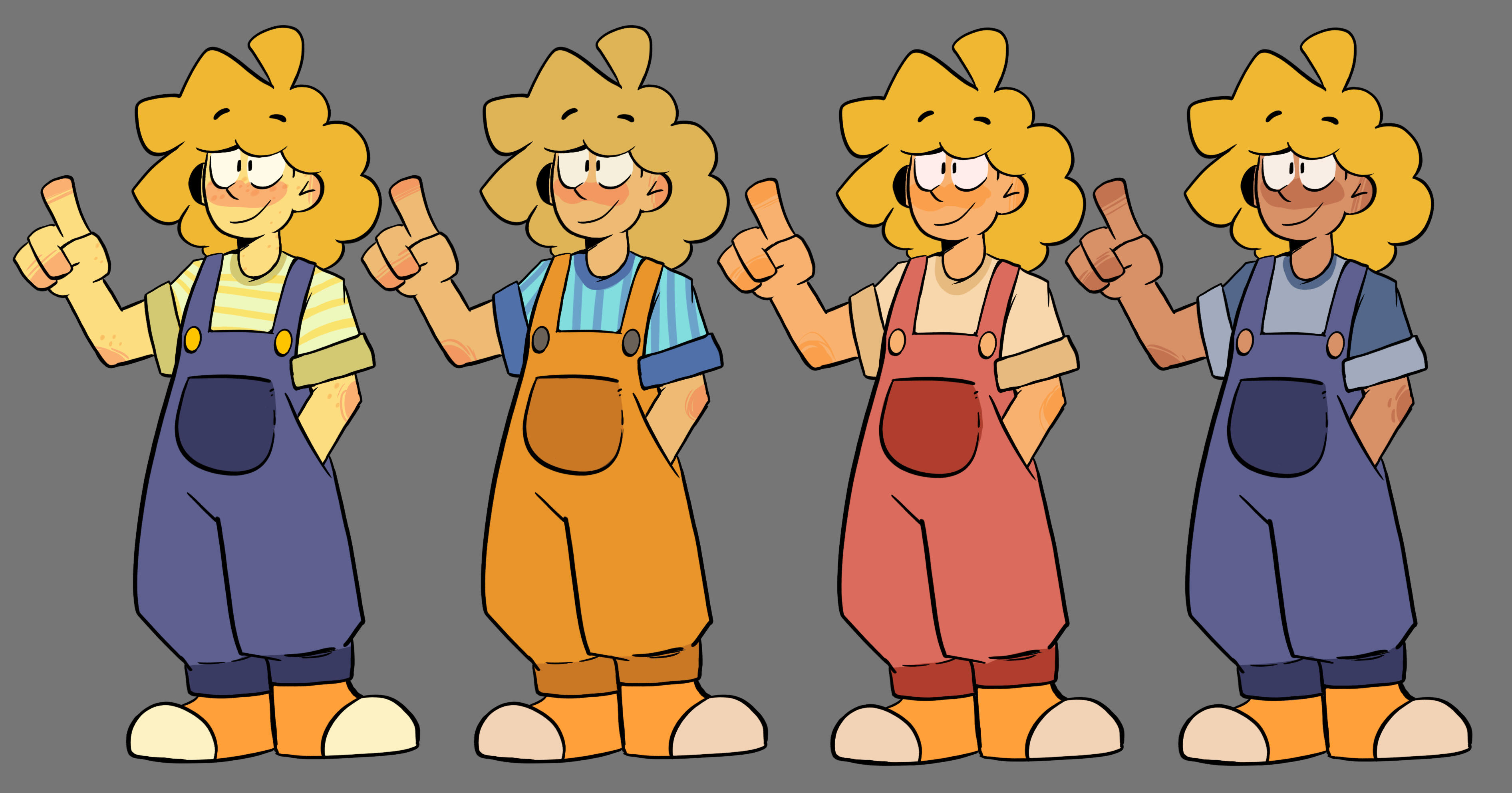 Finding the balance between sharp, unhinged edge and looking too villainous was difficult in the beginning. We also knew we wanted to give Harlow big, chunky pants to make his silhouette stick out against the others (and to break the little stick leg syndrome our cast was developing).You'll find a lot of dark green in their color concepts because like how Bea has touches of red in her design, they have some of her green in their palette. After all, what best friends wouldn't color swap just a little?