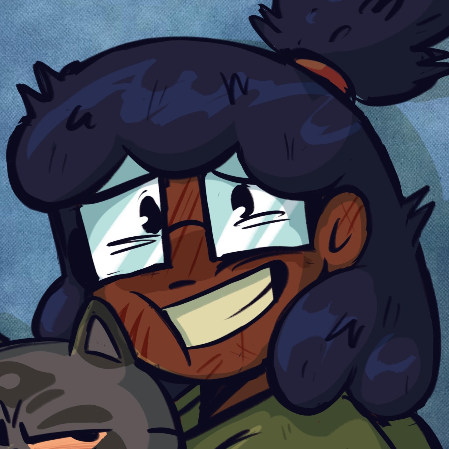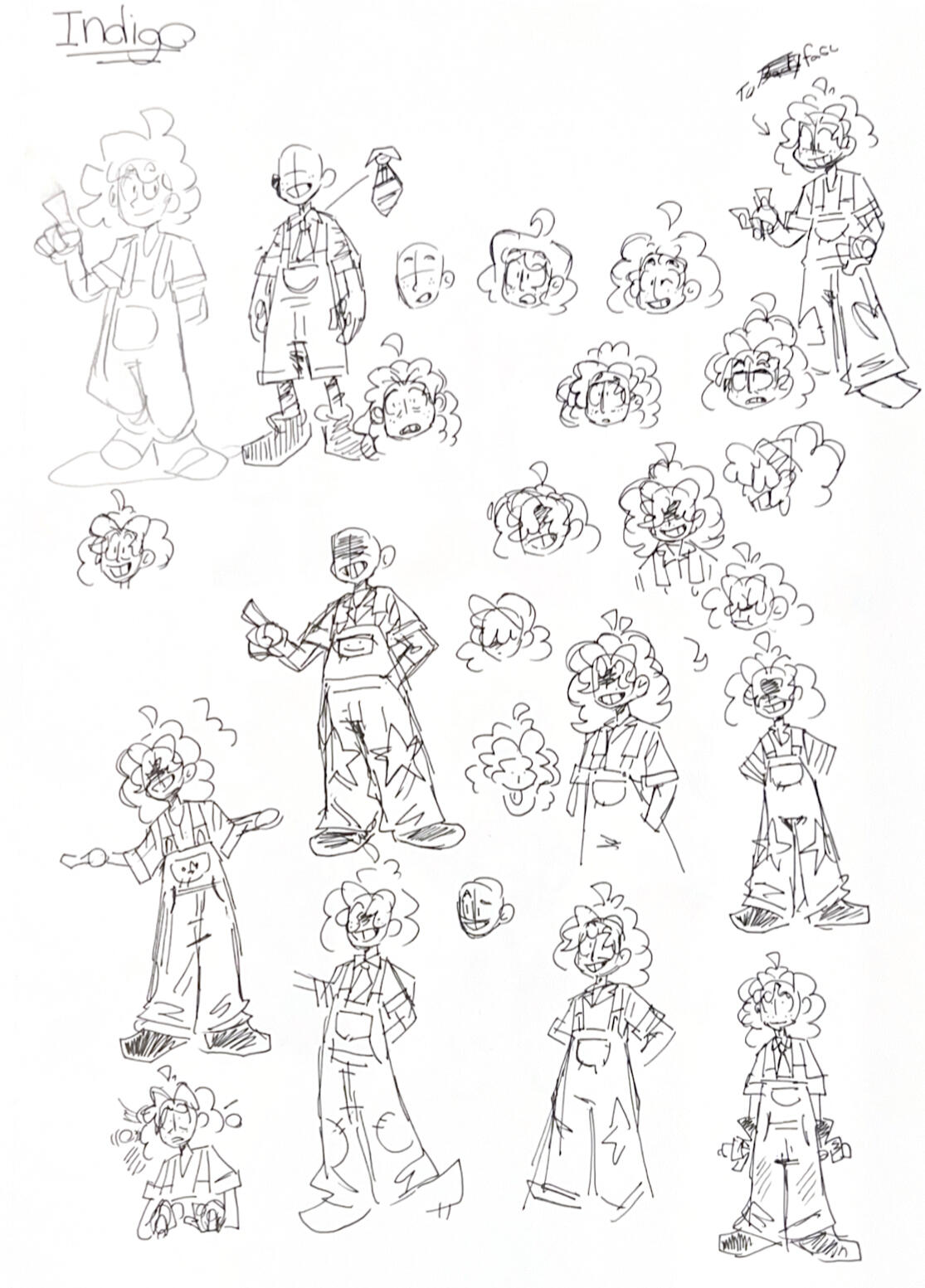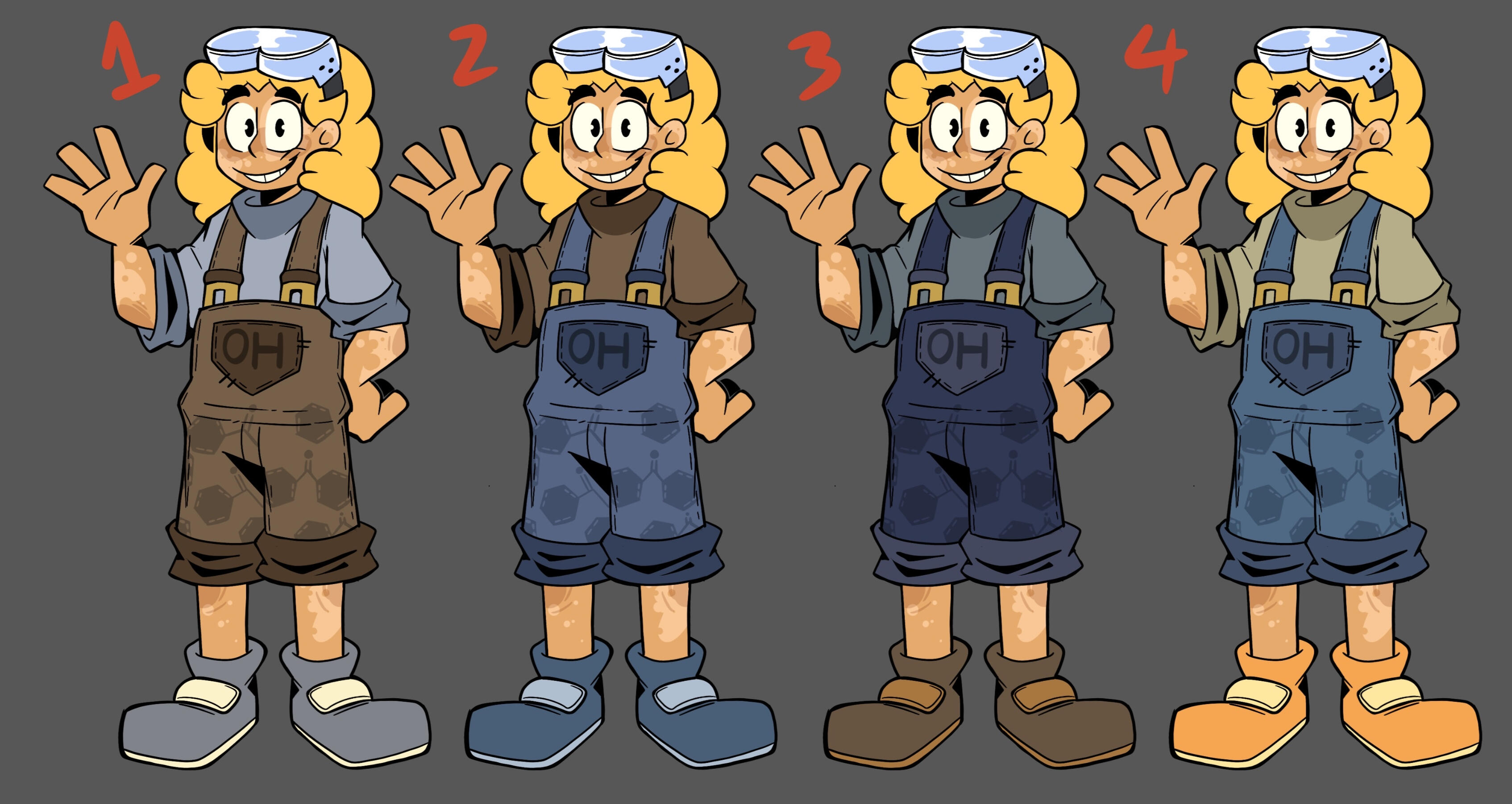 Since we revisited the game, we decided that Indigo's personality and interests needed to be reflected more in his design. Hence the chemical compounds in his overalls and the safety goggles on his head. We also wanted to shoot for that iconic 80's fluffy mullet look, with a hint of deer-like spots in his vitiligo.