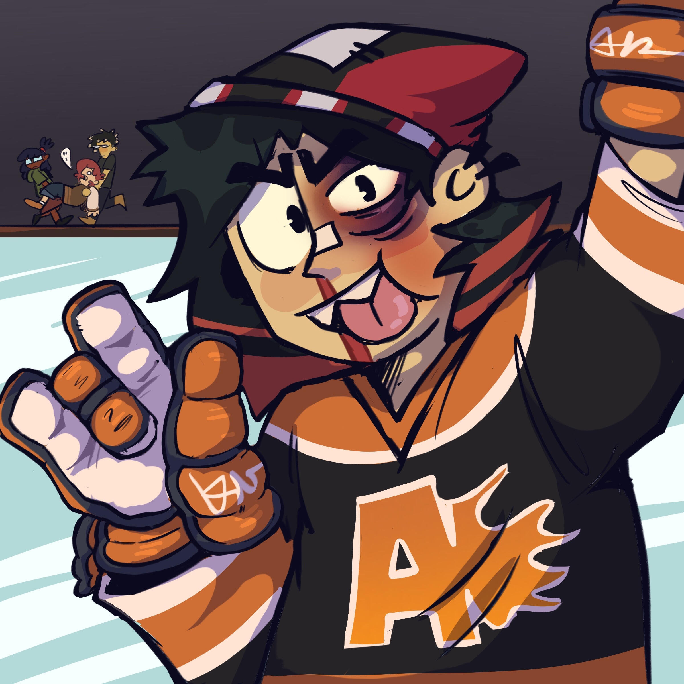 Harlow's a very passionate hockey player, mostly because it's the perfect outlet for all that chaotic energy. They're pretty good at it too.They're unafraid of blood, mud, and will touch just about anything that'd give you tetanus without a moment's hesitation. But not spiders. Screw those creepy little freaks.